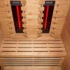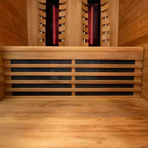 La sauna de infrarrojos 130 es un modelo para 2 personas fabricado en madera termo aspen, equipada con cromoterapia, sistema de sonido Bluetooth/USB y un conjunto de emisores halógenos y de carbono con una potencia total de 2260 W. Una opción ideal para quienes buscan un bienestar profundo y un calentamiento uniforme.