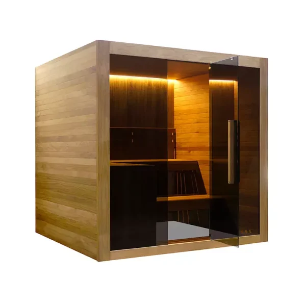 La sauna seca tradicional 210 está diseñada para ofrecer una experiencia de relajación superior en espacios domésticos o profesionales que requieren amplitud, diseño y durabilidad. Fabricada con madera de álamo termo de 48 mm, garantiza una excelente capacidad de aislamiento, reduciendo la pérdida de calor y mejorando la eficiencia energética. Su exterior chapado en negro ( opción en color escandinavo) aporta un estilo moderno y sofisticado, ideal para integrarse en zonas wellness, spas privados y suites de alojamiento turístico.